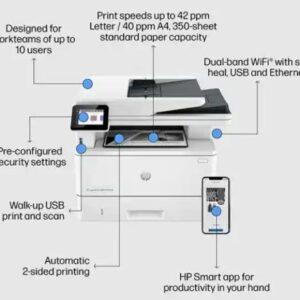 Compact design with groundbreaking performance. High-speed, double-sided printing at up to 42 ppm and dual-sided scanning. HP Smart app enabled so you can easily print and scan from your mobile devices. 2 3
