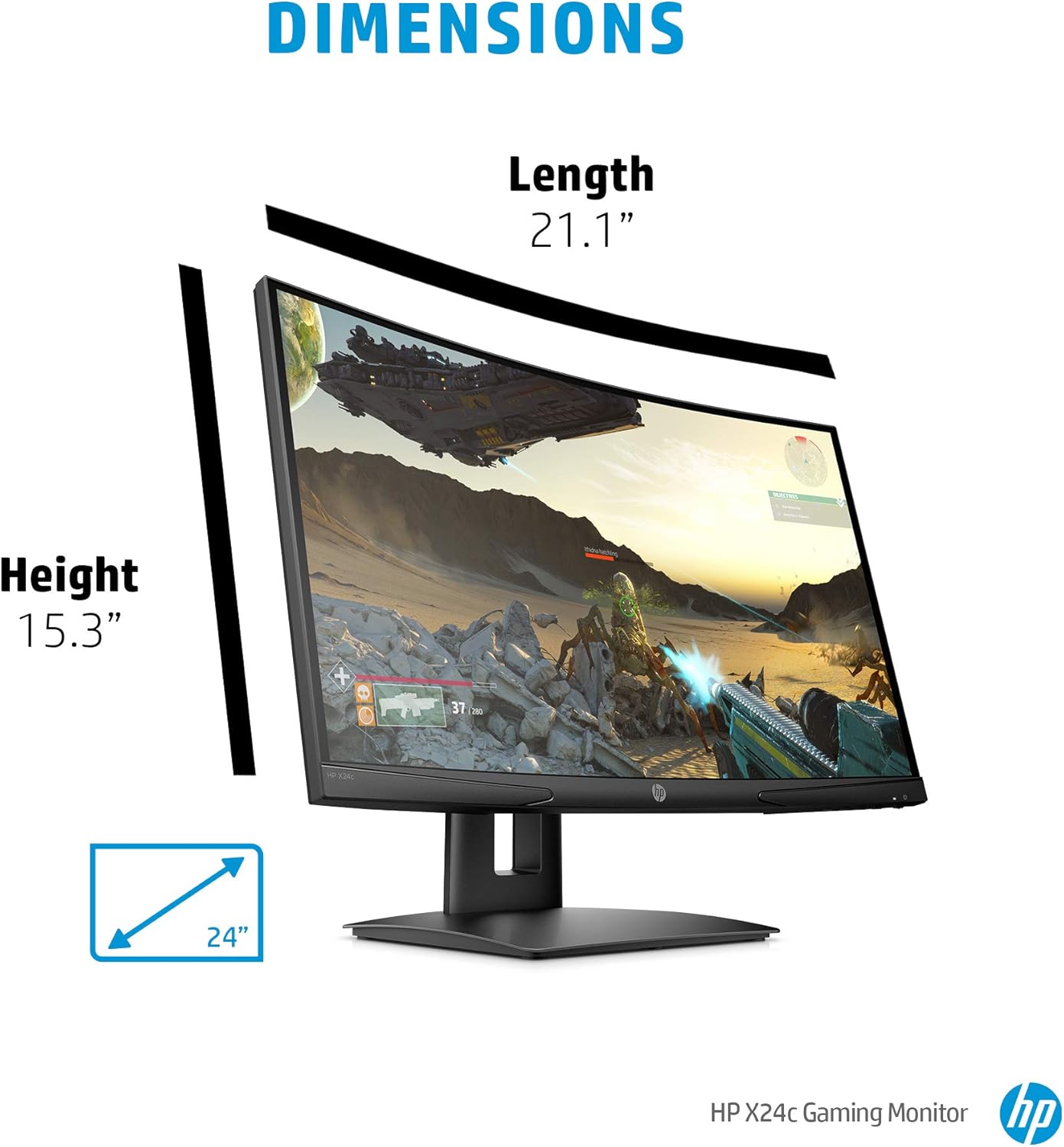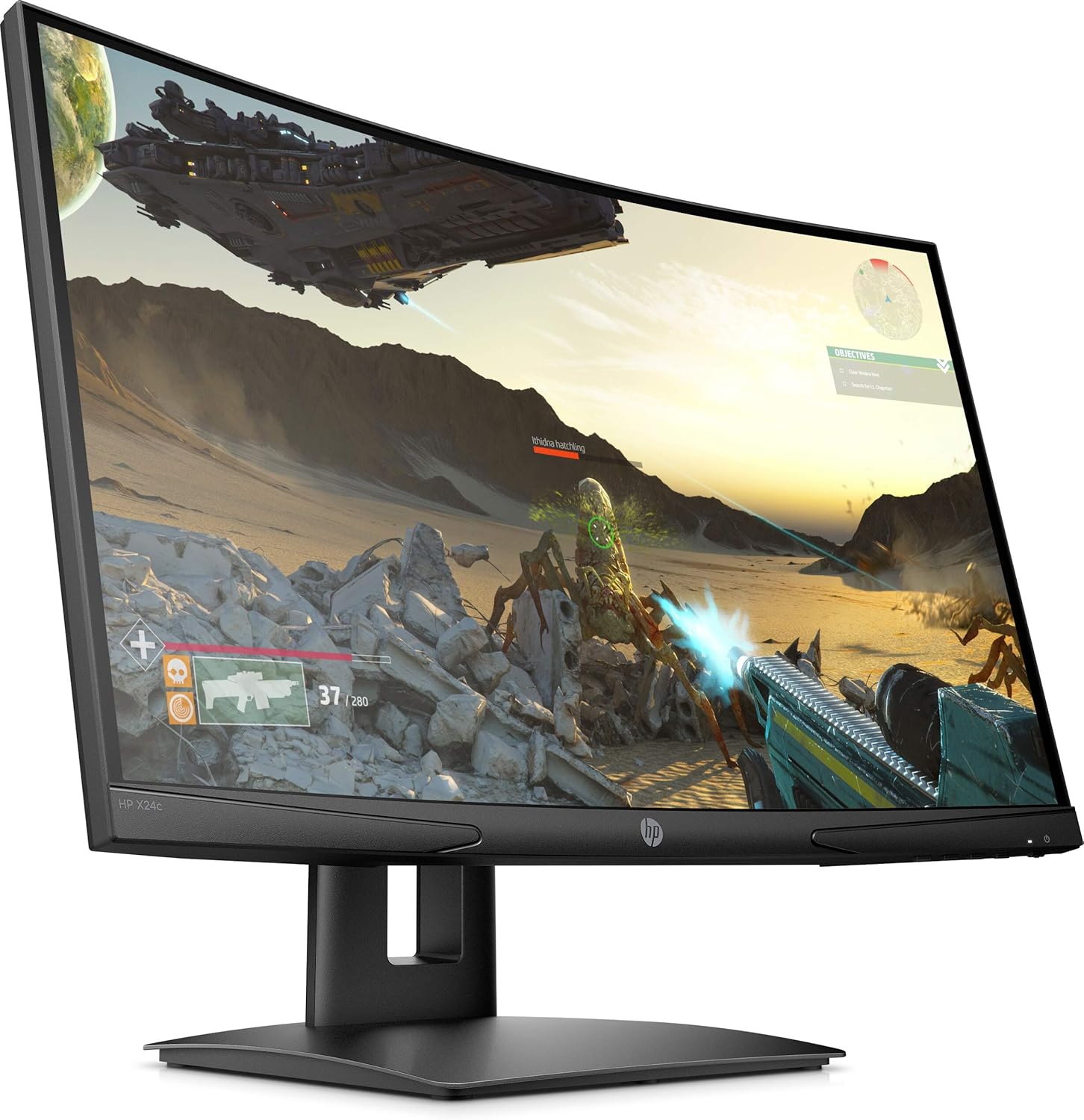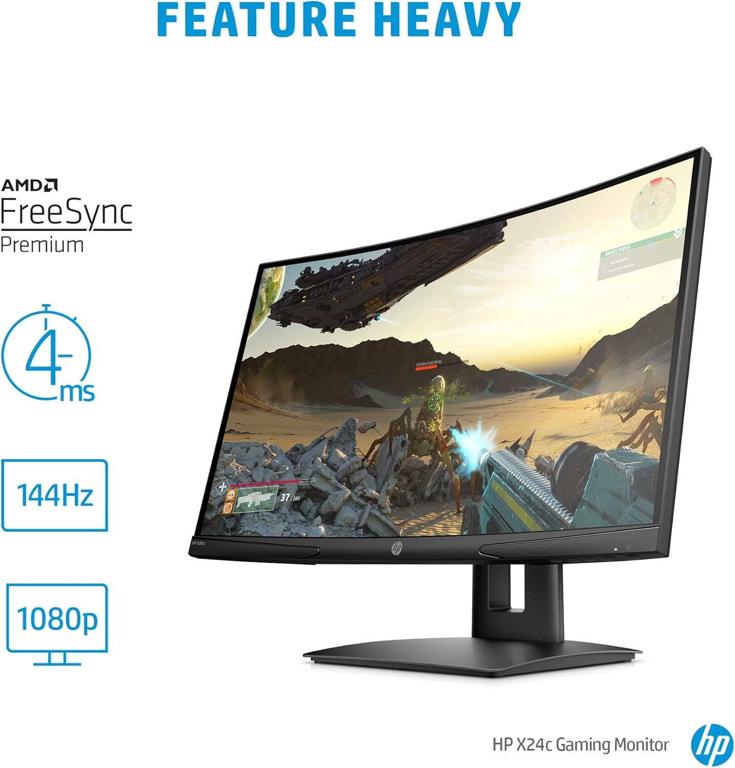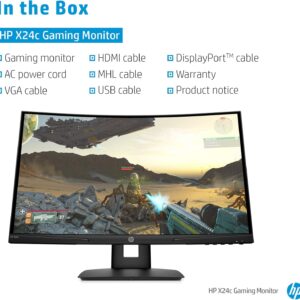 HP X24c 23.6 FHD Curved Gaming Monitor, 1920×1080, 169, 144Hz, Curvature 1500R, HeightTilt Adjustable, Black Color, Connectivity 1 HDMI 2.0, 1 DisplayPort 1.2, 1 3.5mm Audio Out – 9FM22AS